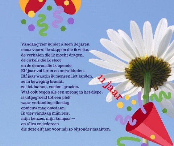 Elf. Het is geen gewoon getal. Het heeft voor mij iets speels, iets lichts, iets dat net buiten de lijntjes durft te kleuren. Precies zo voelt het om 11 jaar ondernemer te zijn, want ondernemen is voor mij nooit een rechte lijn geweest. Het was een reis vol onverwachte bochten en hobbels, stille inzichten, nieuwe ontmoetingen en momenten waarop ik mezelf opnieuw mocht uitvinden.