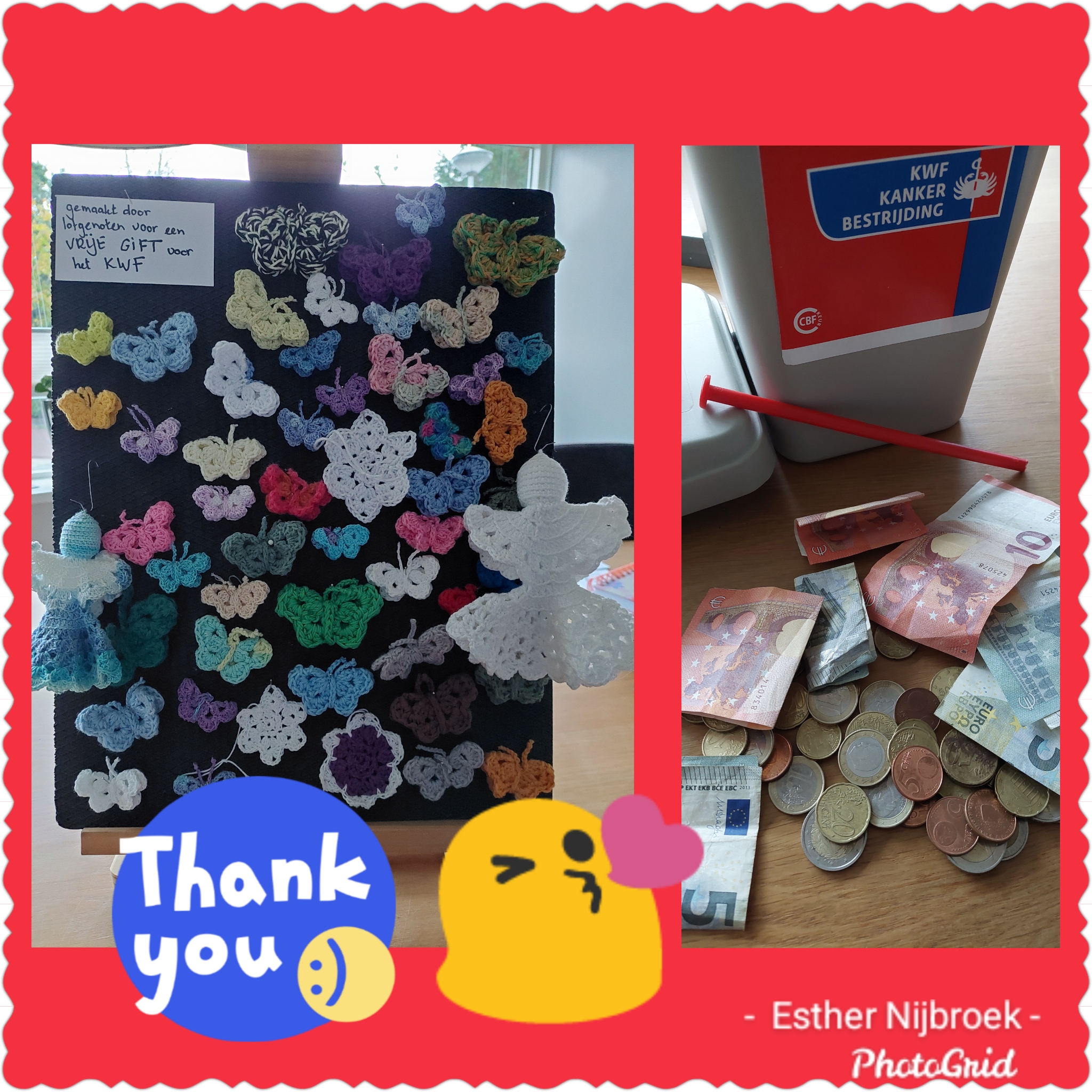 Deze week heb ik met toestemming van het KWF de bus opengemaakt. Er zat het prachtige bedrag in van € 96,45 πŸ™Dit bedrag heb ik, mooi afgerond, overgemaakt aan het KWF.